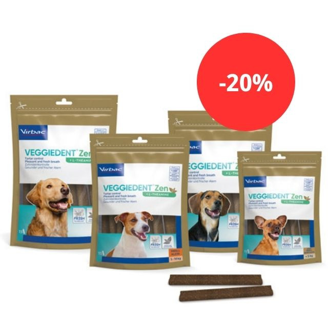 €12,64 - €23,52VEGGIEDENT® ZEN, 2-in-1 gebitsverzorging en relaxatie Smakelijk aanvullend diervoeder voor honden Tandplak- en tandsteen controle Helpt bij het onderhouden van een gezond gebit en een frisse adem Bevat L-theanine dat helpt huisdieren... -